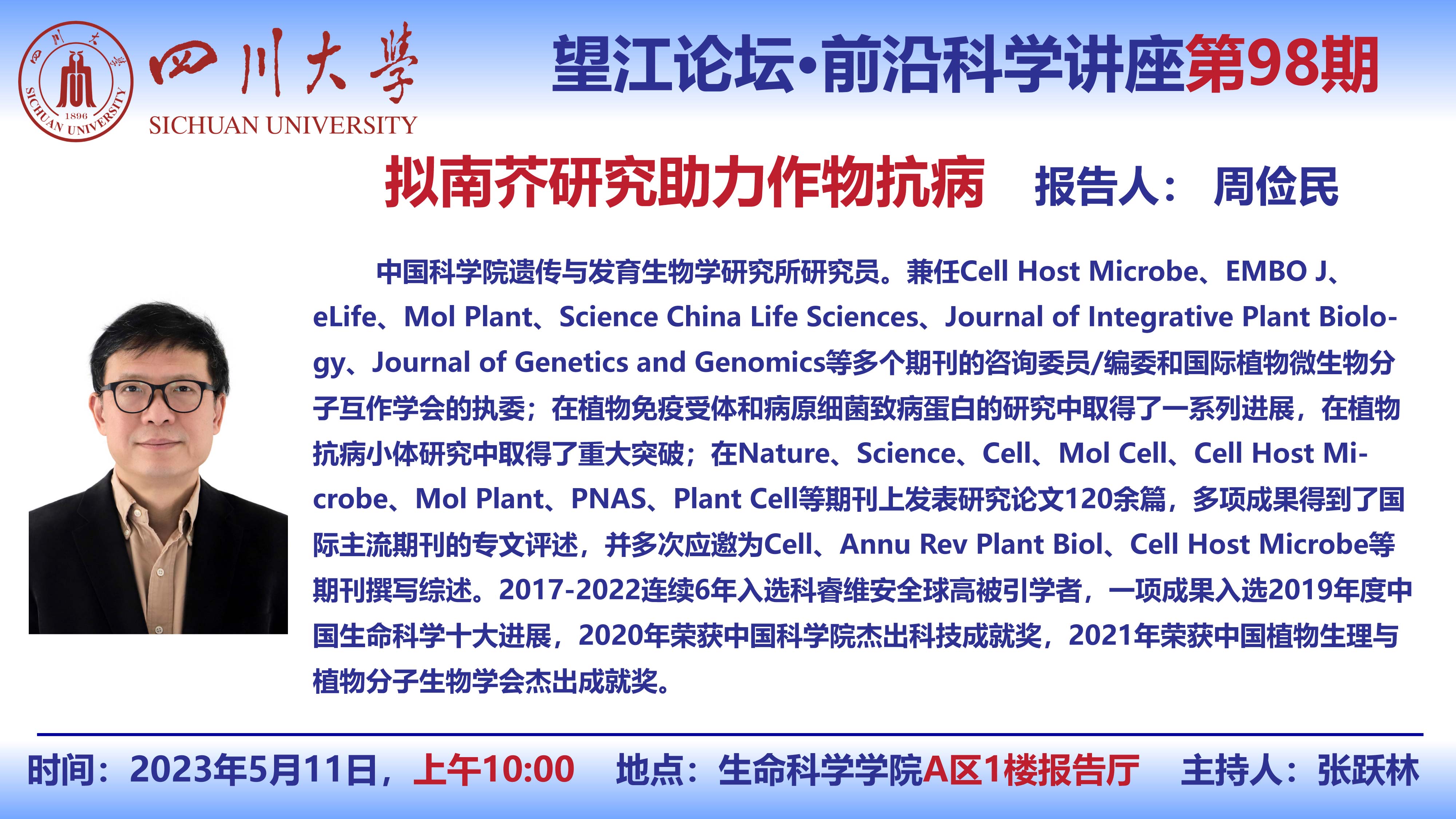 望江论坛-前沿科学讲座(第98期):周俭民研究员5月11日学术报告