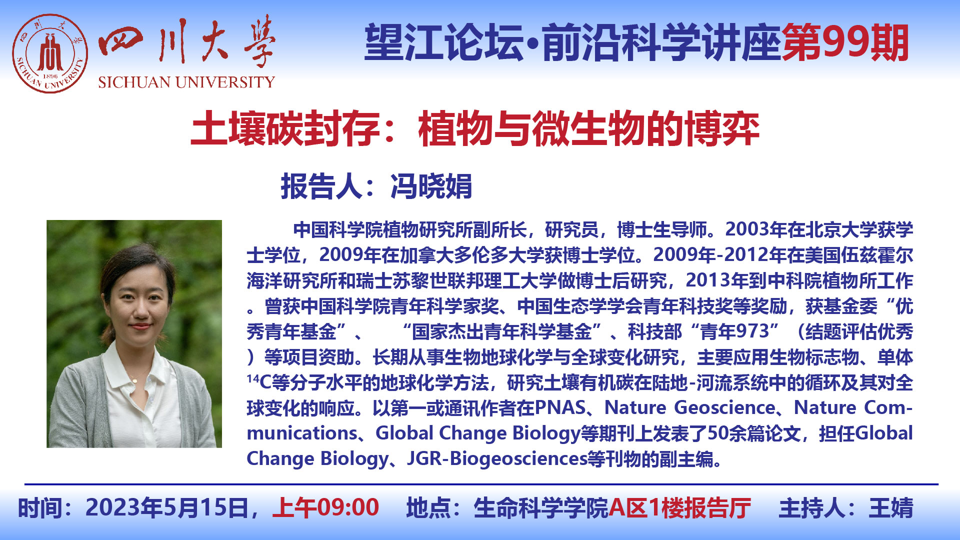 望江论坛-前沿科学讲座(第99期):冯晓娟研究员5月15日学术报告