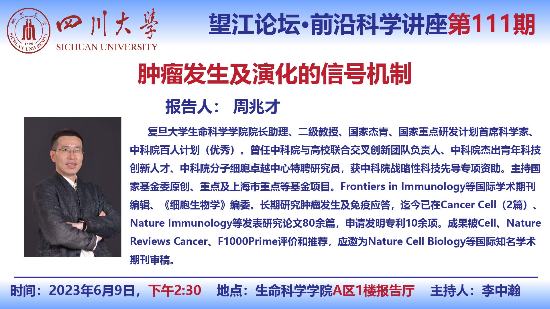 望江论坛-前沿科学讲座(第111期):周兆才教授6月9日学术报告