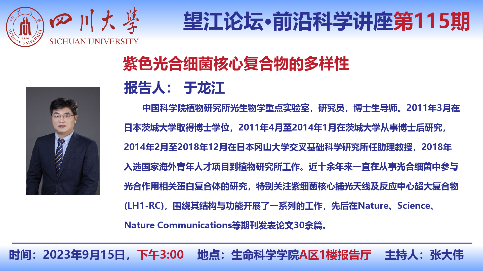 望江论坛-前沿科学讲座(第115期):于龙江研究员9月15日学术报告