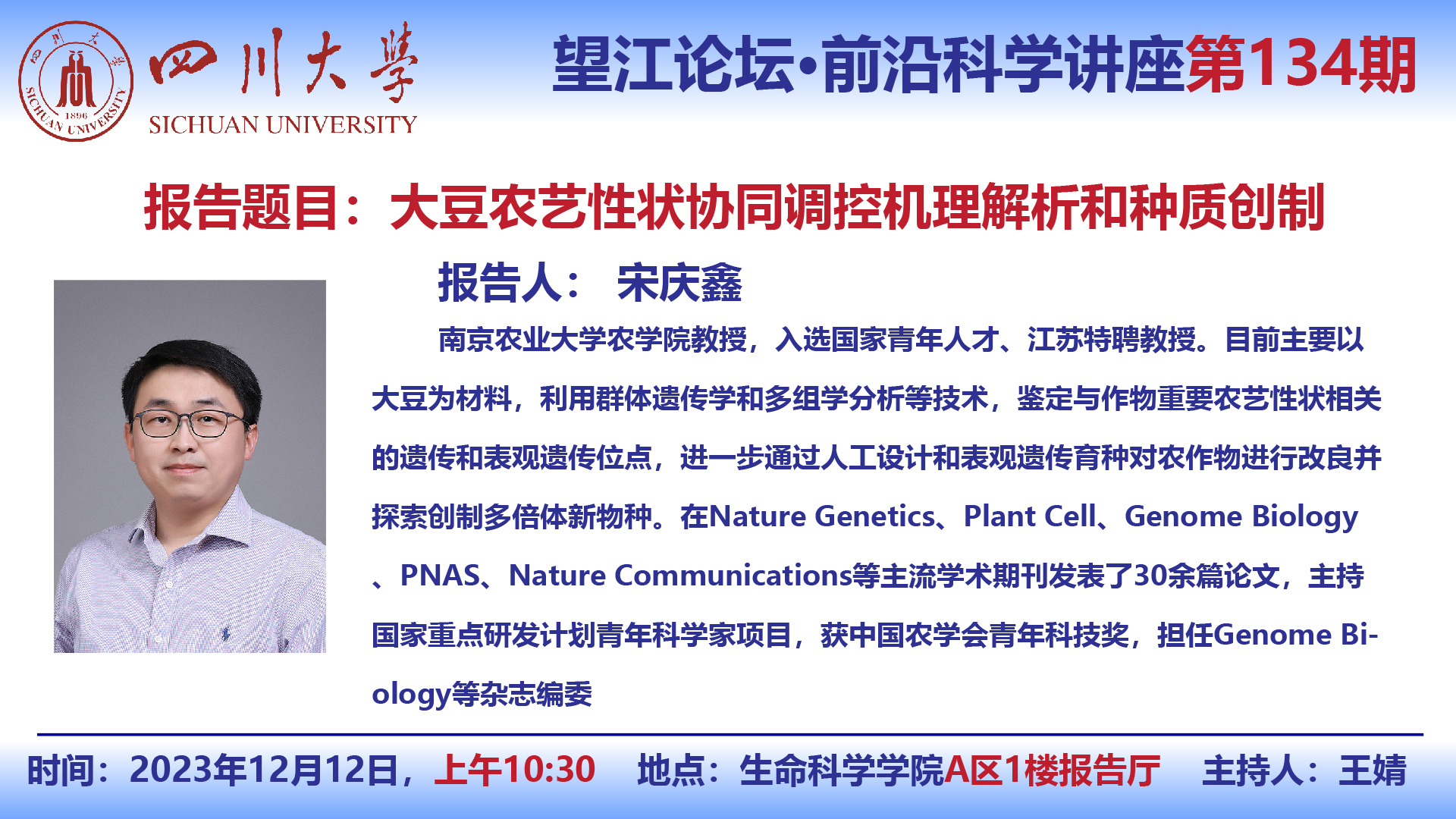望江论坛-前沿科学讲座第(134期):宋庆鑫教授12月12日学术讲座