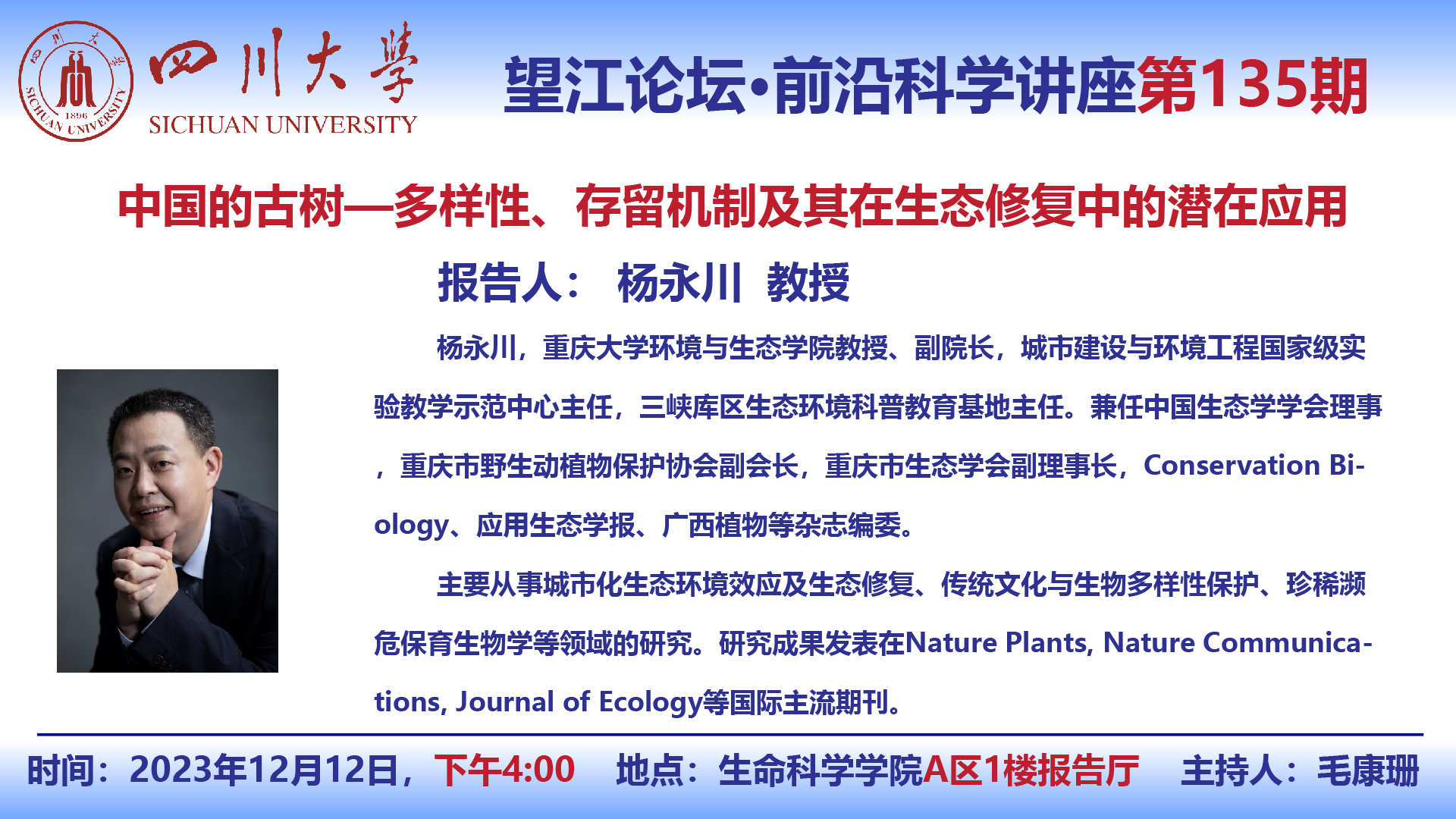 望江论坛-前沿科学讲座第(135期):杨永川教授12月12日学术讲座