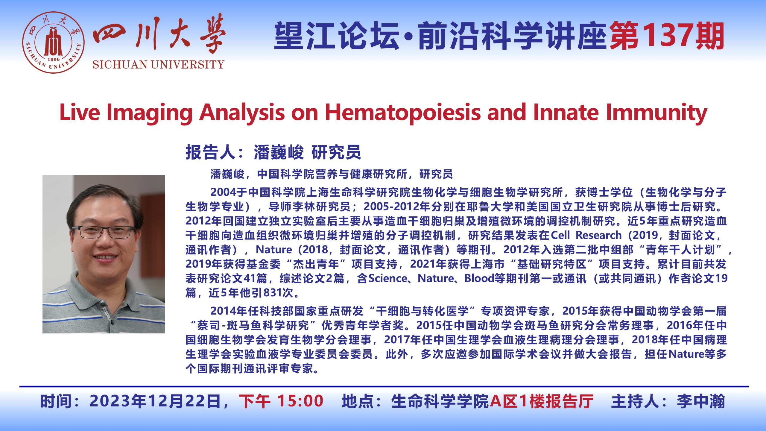 望江论坛-前沿科学讲座第(136期):施松涛教授12月18日学术讲座