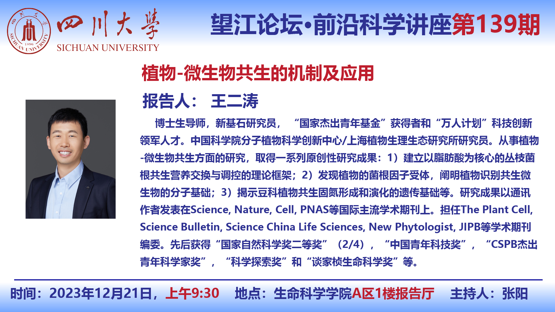 望江论坛-前沿科学讲座第(139期):王二涛研究员12月21日学术讲座