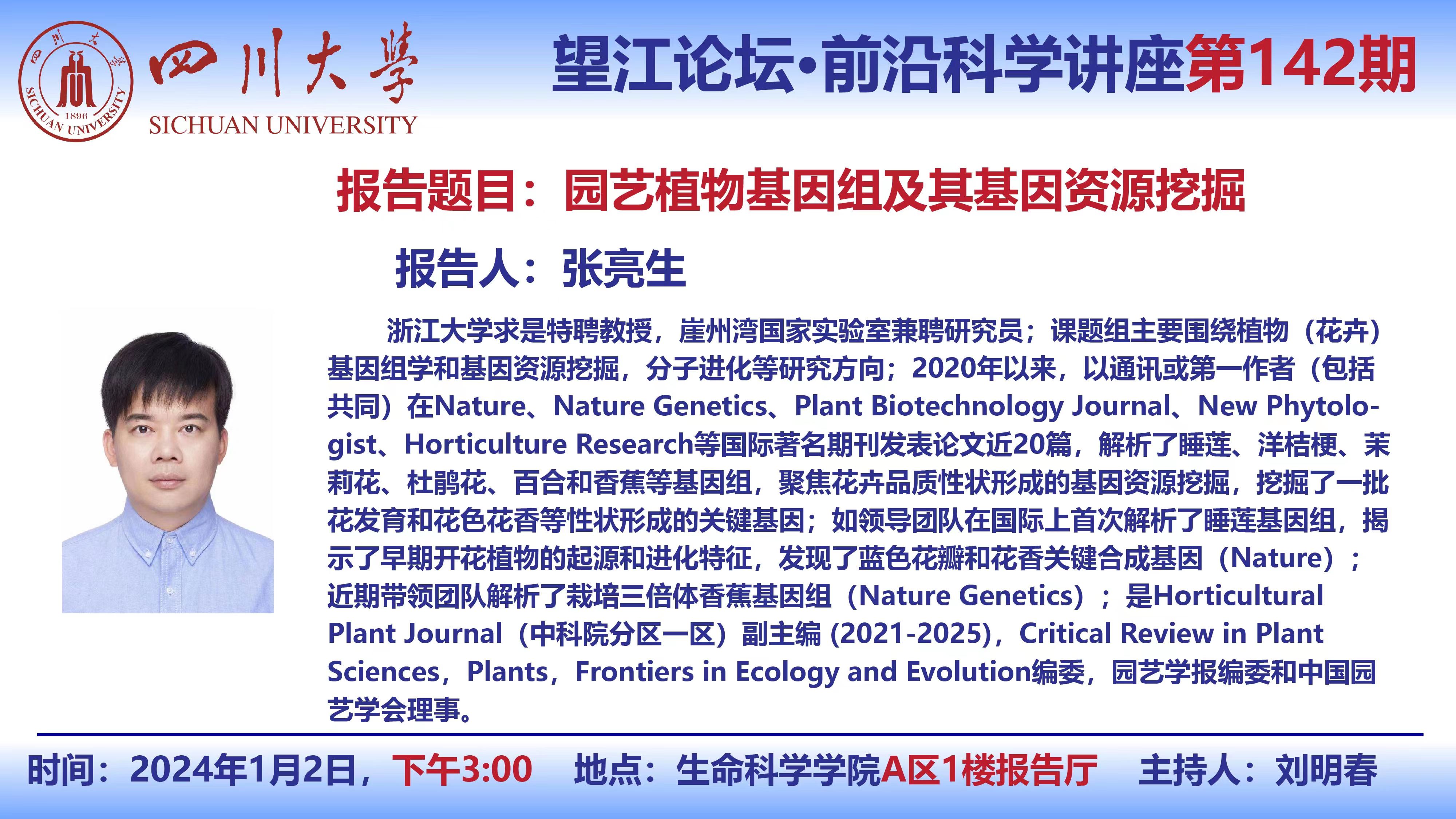 望江论坛-前沿科学讲座第(142期):张亮生教授1月2日学术讲座