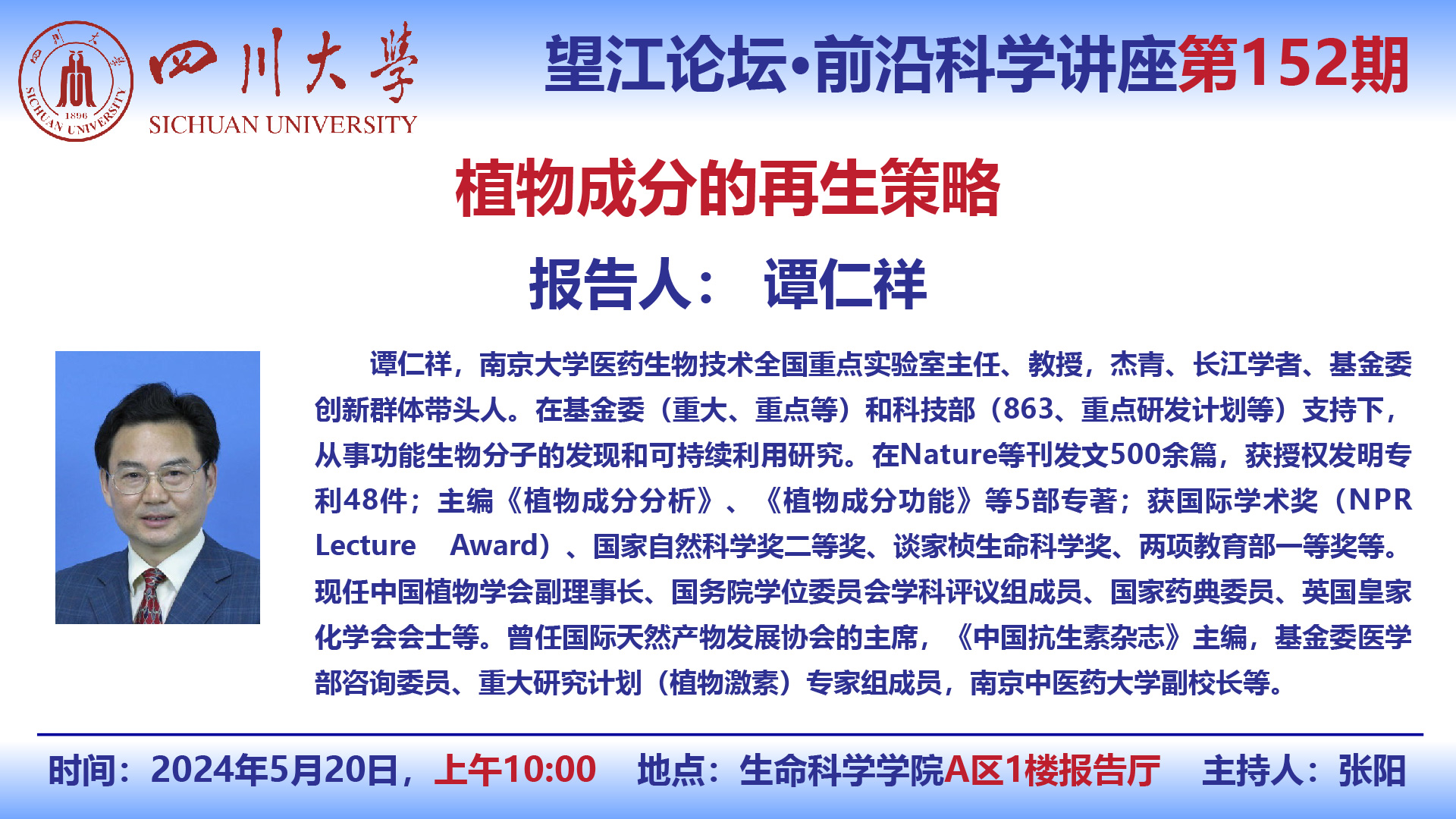 望江论坛-前沿科学讲座(第152期):谭仁祥教授5月20日学术讲座