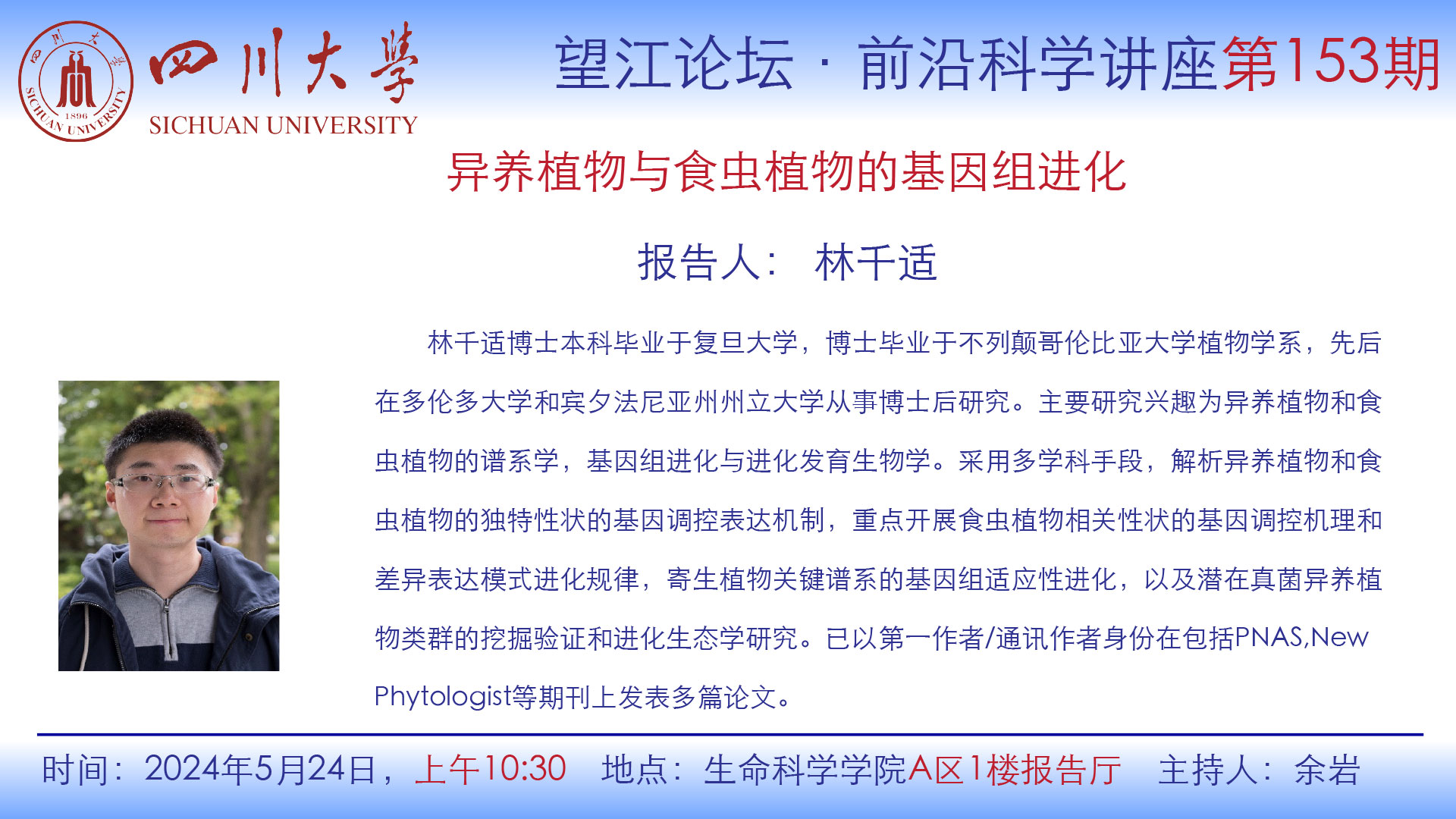 望江论坛-前沿科学讲座(第153期):林千适博士5月24日学术讲座