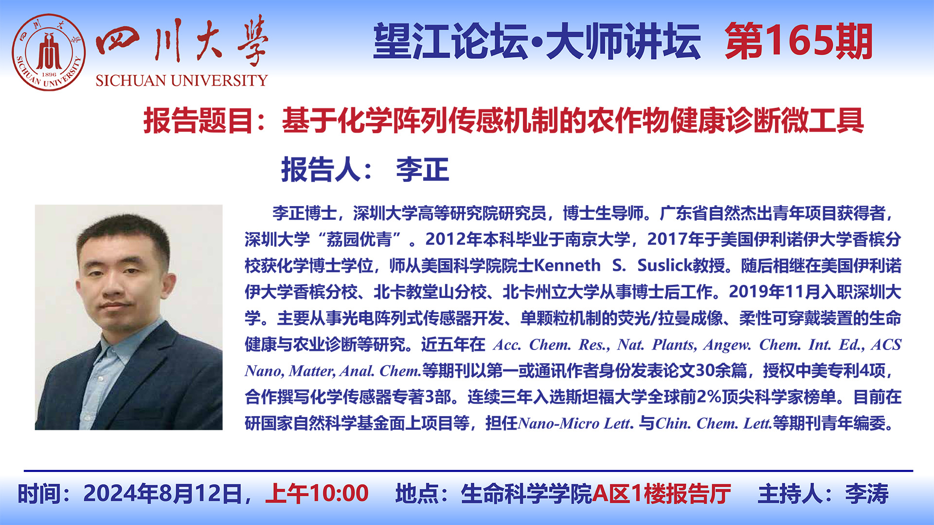 望江论坛-前沿科学讲座(第165期):李正研究员8月12日学术讲座