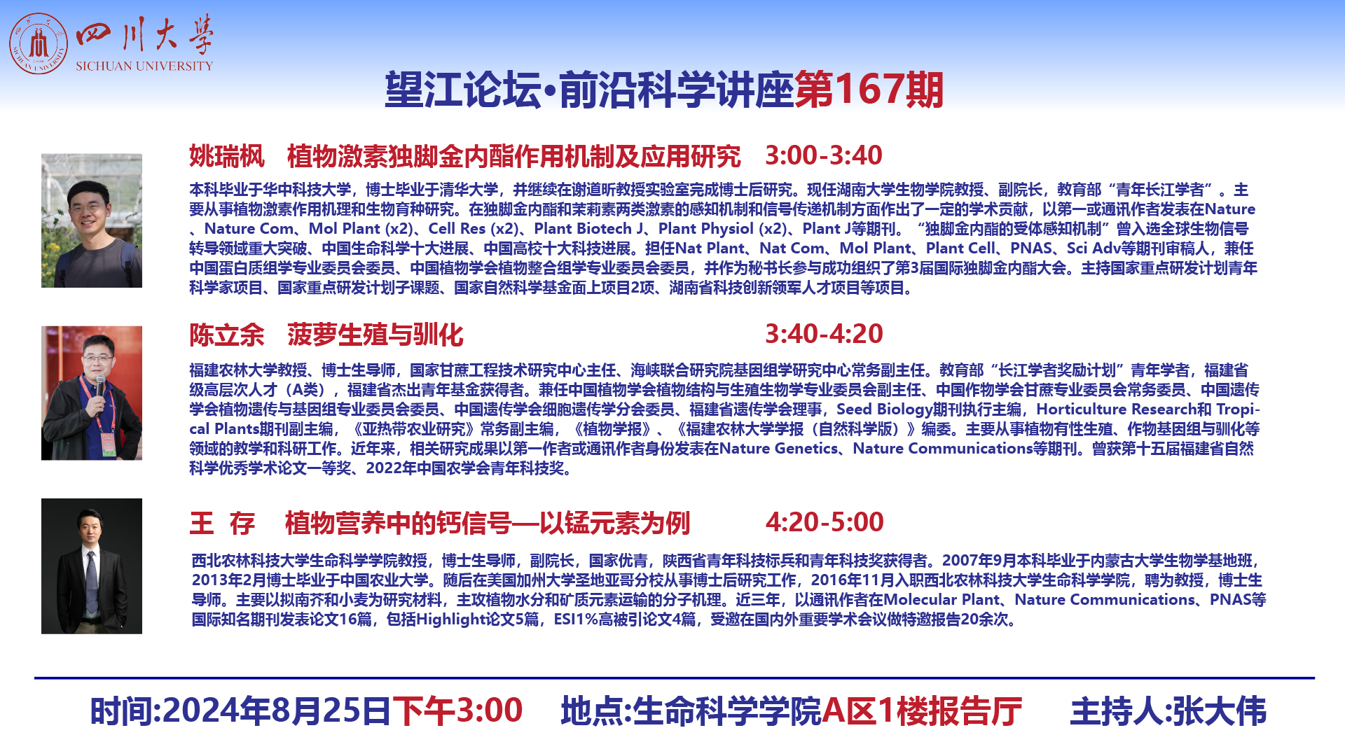 望江论坛-前沿科学讲座(第167期)8月25日学术讲座