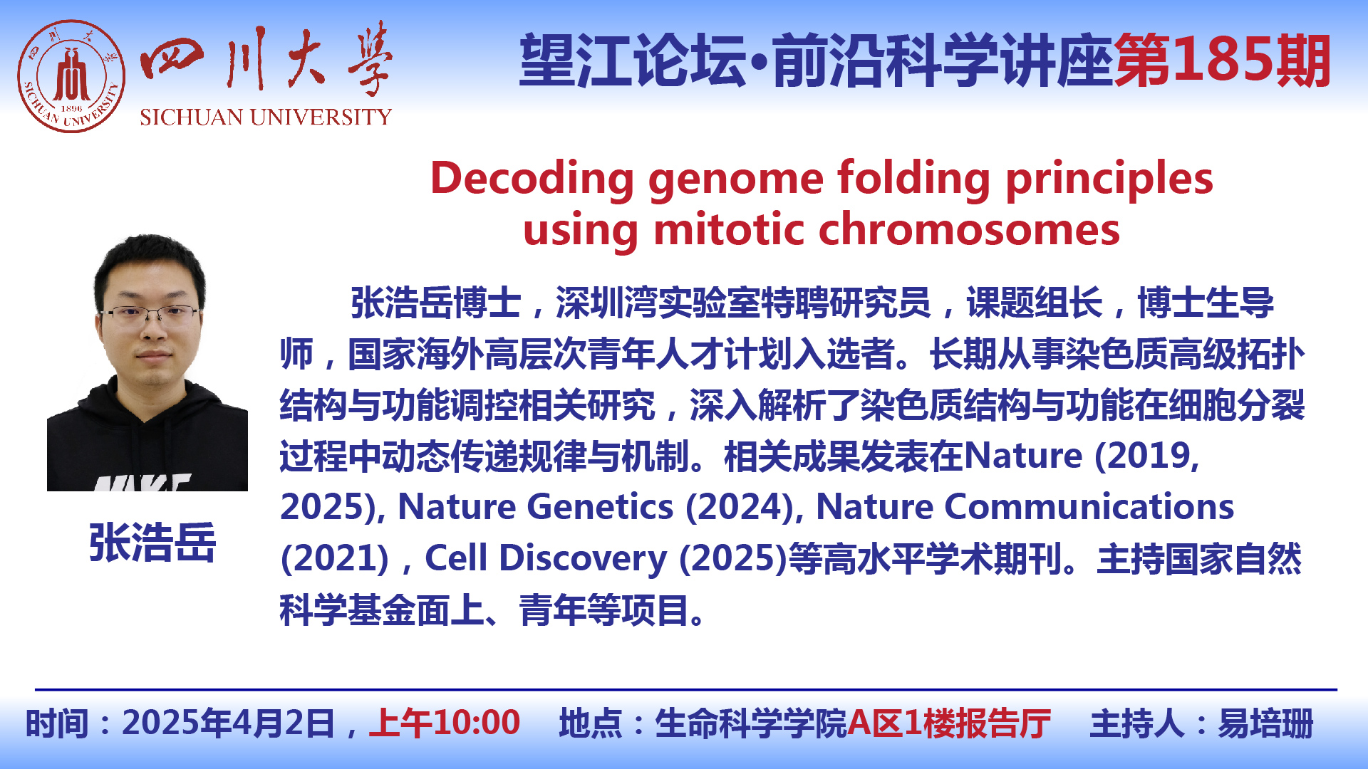 望江论坛-前沿科学讲座(第186期):柴继杰教授4月14日学术讲座