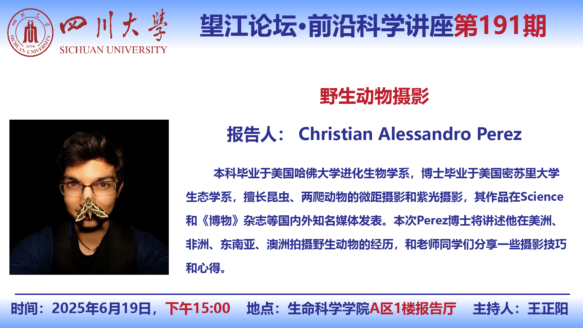 望江论坛-前沿科学讲座(第191期):Christian Alessandro Perez博士6月19日学术讲座