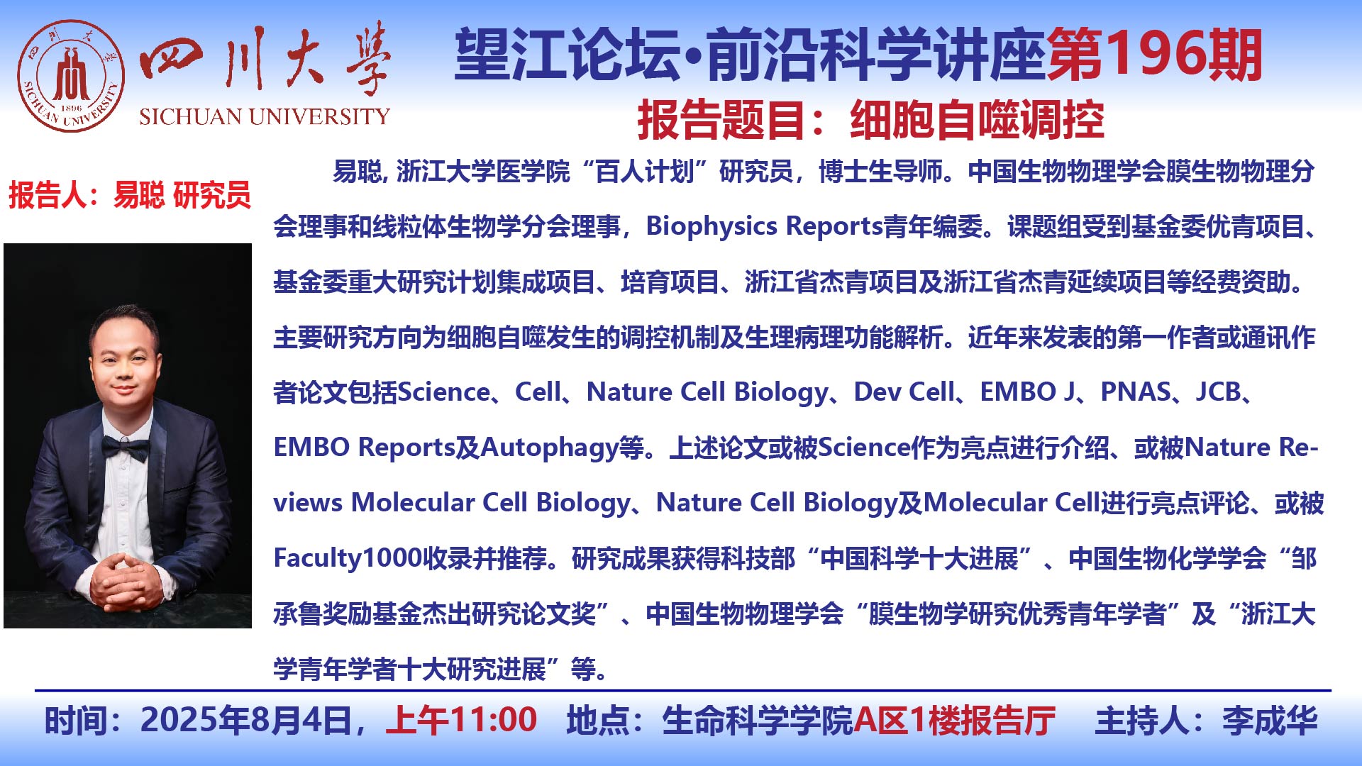 望江论坛-前沿科学讲座(第196期):易聪研究员8月4日学术讲座