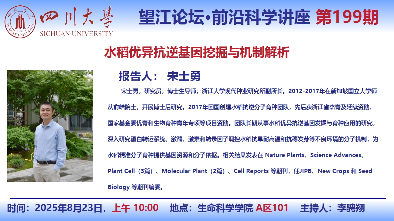 望江论坛-前沿科学讲座(第199期):宋士勇教授8月23日学术讲座