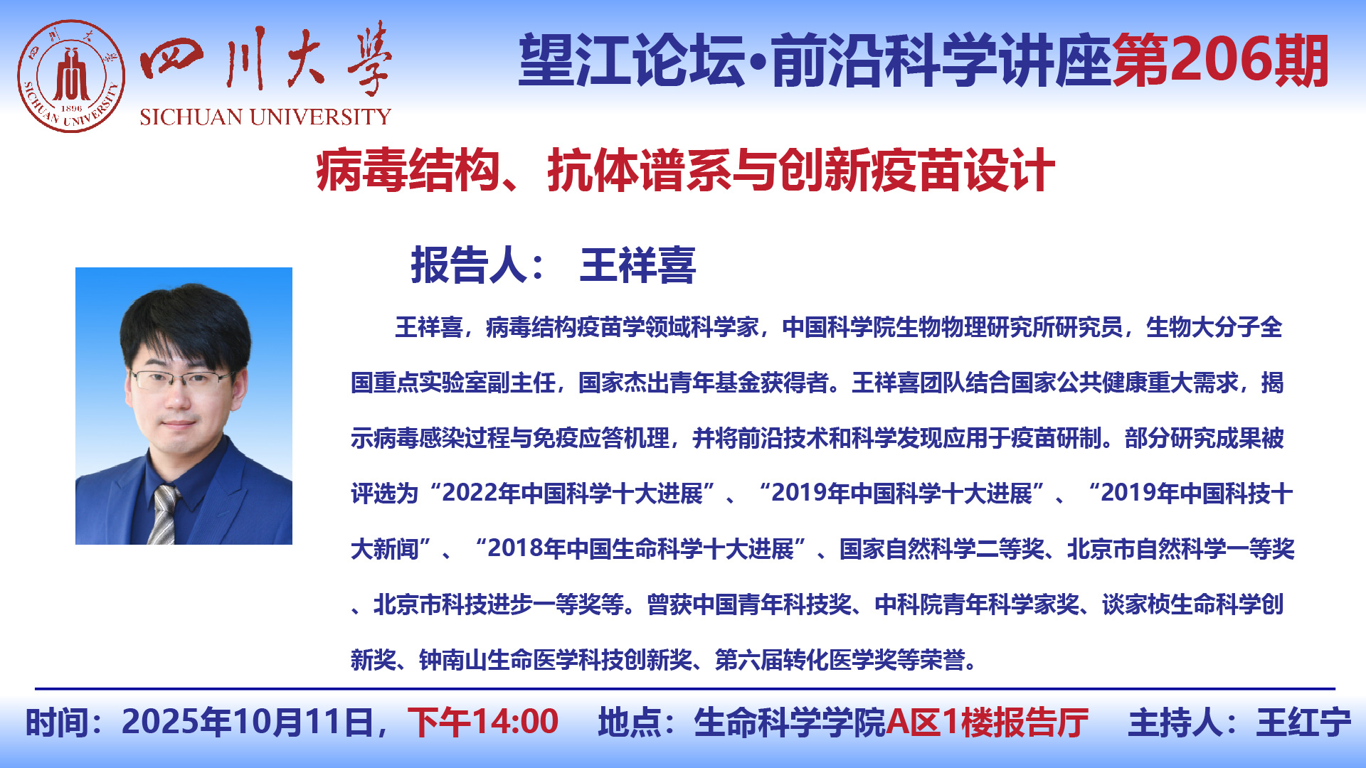 望江论坛-前沿科学讲座(第206期):王祥喜研究员10月11日学术讲座