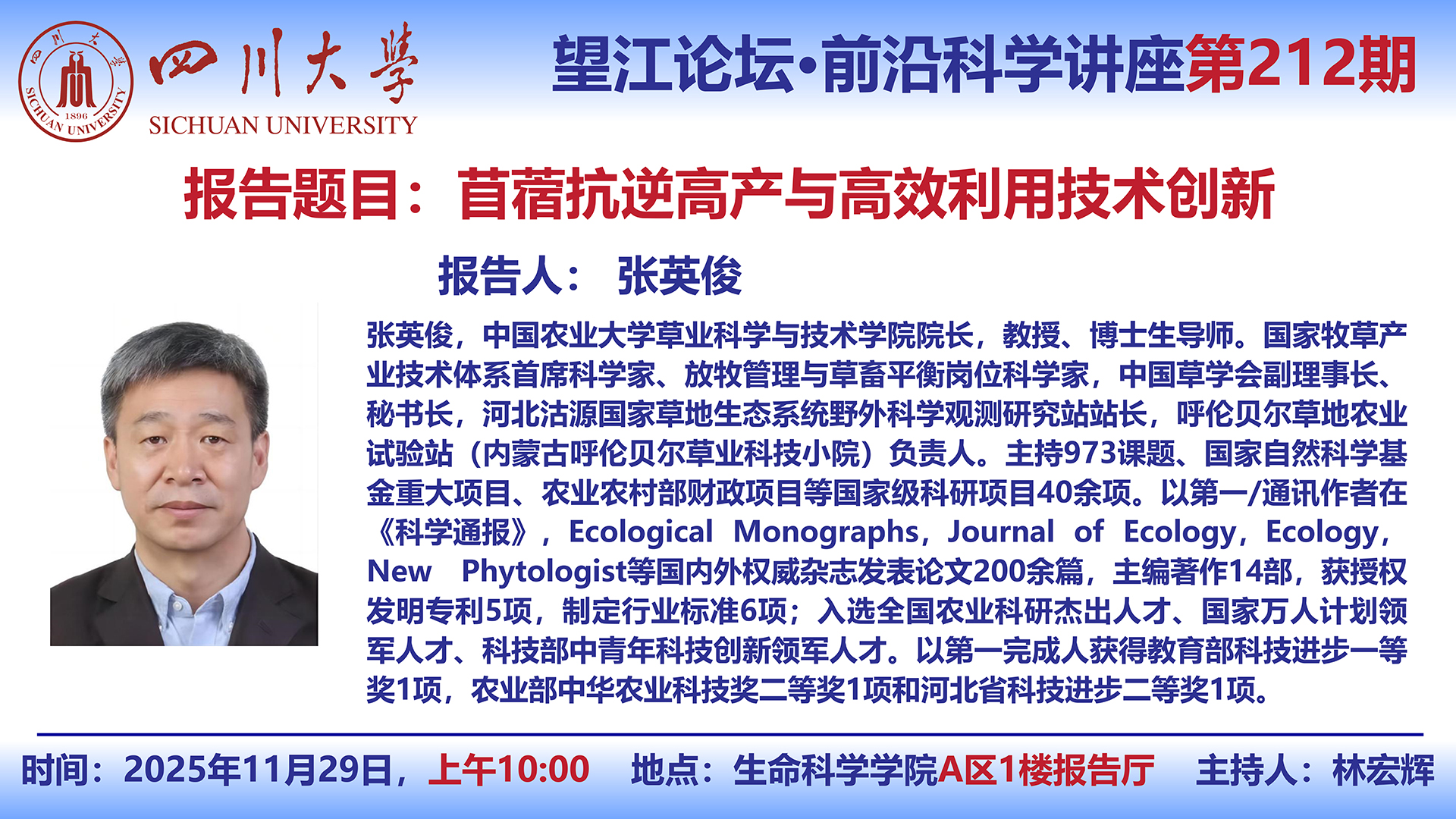 望江论坛-前沿科学讲座(第212期):张英俊教授11月29日学术讲座