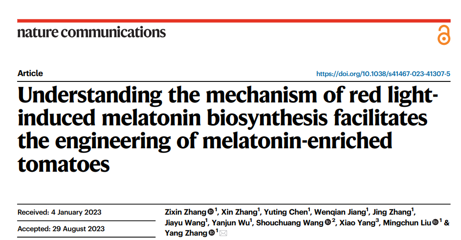 近日,bat365在线中国官网登录入口bat365在线中国官网登录入口张阳课题组在《Nature Communications》上发表了题为"Understanding the mechanism of red light-induced melatonin biosynthesis facilitates the engineering of melatonin-enriched tomatoes"的研究论文。提出了通过解析环境因子影响关键代谢物合成的调控机制,实现营养品质设计育种的新思路。